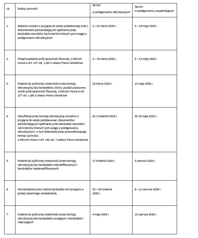 Terminy przeprowadzania postępowania rekrutacyjnego i postępowania uzupełniającego, w tym terminy składania dokumentów, na rok szkolny 2026/2027: